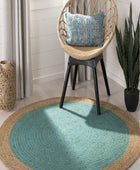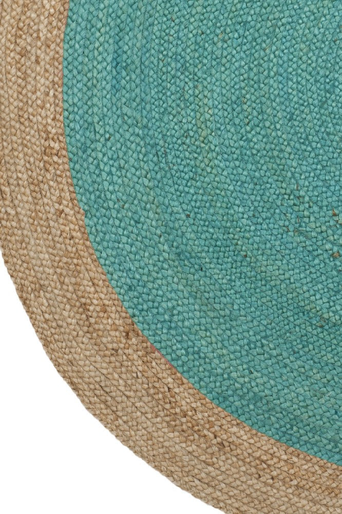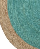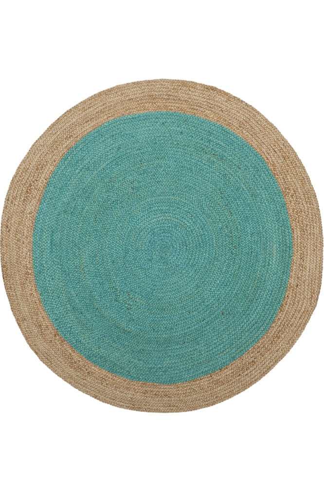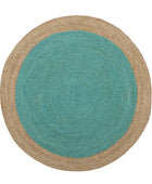 TEAL AND NATURAL ROUND JUTE HAND WOVEN DHURRIE