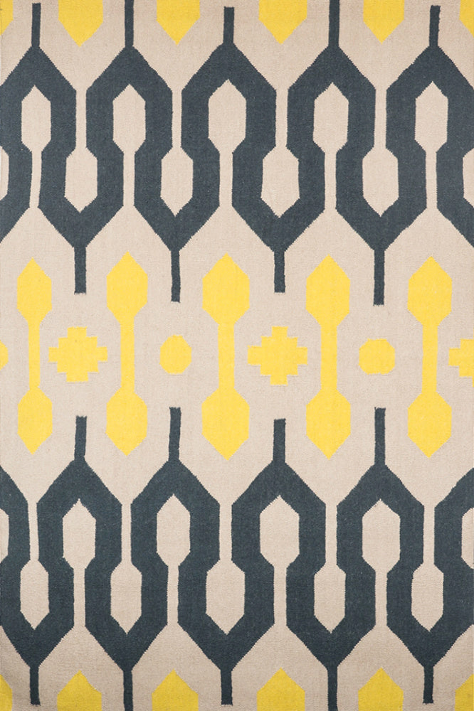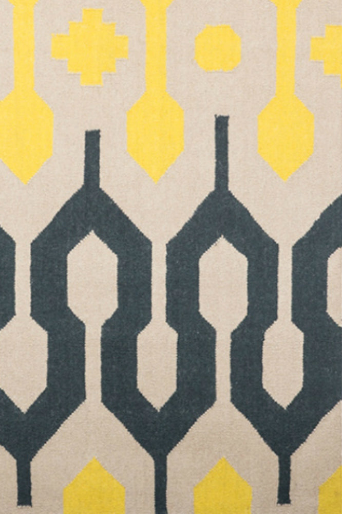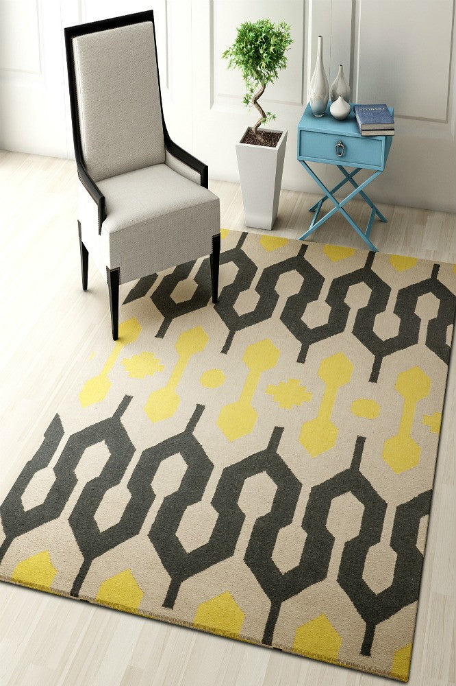 YELLOW CHARCOAL ANKARA HAND WOVEN DHURRIE